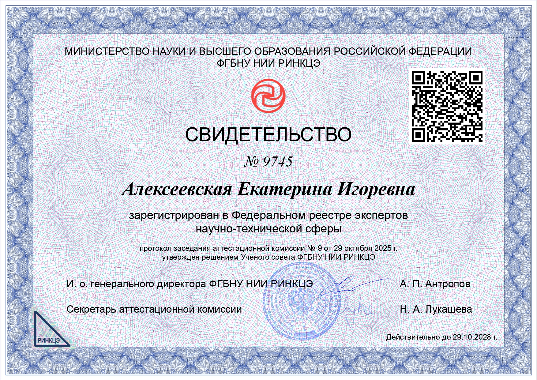 Эксперт Института проблем правового регулирования Екатерина Алексеевская зарегистрирована в Федеральном реестре экспертов научно-технической сферы.